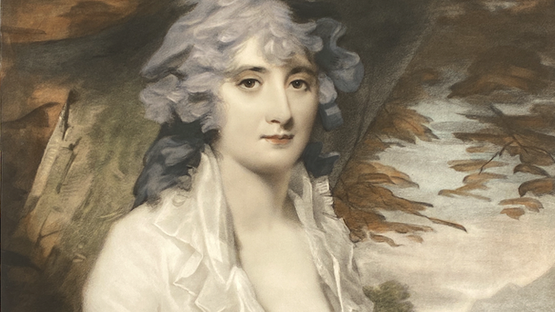 A watercolor painting after conservation treatment to reduce staining and discoloration.